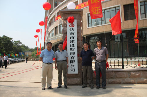 上午11时28分,公司董事长、总经理林峰与副总经理李宏伟、王新、高峰共同为公司揭牌,标志着济南监理正式入住旅游路21737号新址。随后,参加庆典的人员在办公楼大厅门前合影留念,乔迁庆典顺利结束。