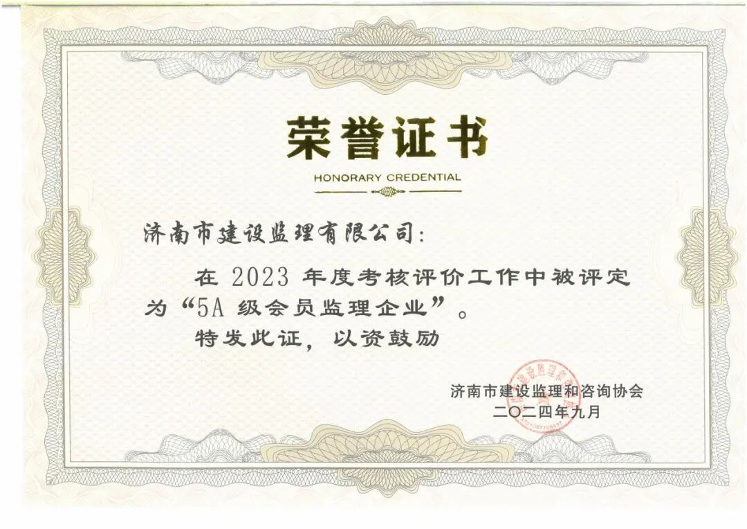 两项荣誉的获得,不仅是一个称号,更是一份沉甸甸的责任。展望未来,济南监理将继续秉持“友爱诚信、科学公正、优质高效、求实创新”的企业精神,不断提升自身实力,为客户提供更加优质的服务。